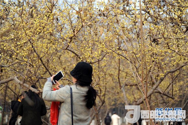 近日,西安市興慶公園內(nèi)的臘梅凌寒開放,吸引眾多游客前來賞花。張博文攝