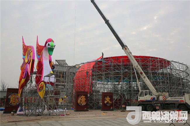 1月22日,記者走進(jìn)大唐芙蓉園,環(huán)芙蓉湖一圈,見2018新春燈會的大型燈組已基本到位,規(guī)模氣勢超大唐芙蓉園歷屆燈會。這組水上燈組濃縮了水陸絲綢之路風(fēng)情。