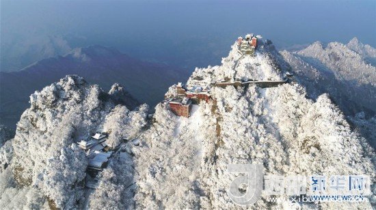 這是1月29日航拍的湖北武當(dāng)山金頂景區(qū)雪景。連日降雪讓武當(dāng)山銀裝素裹,金頂景區(qū)的建筑在白雪的裝扮下宛如瓊樓玉宇。 (陶德斌 攝)