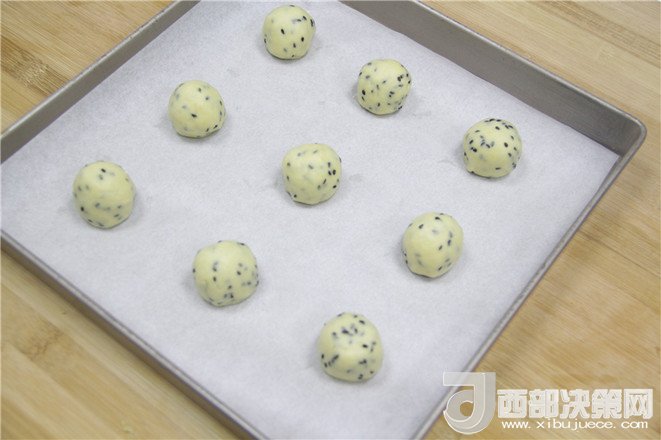 5.面團(tuán)靜置完后,分成20克一小份,用掌心壓扁。