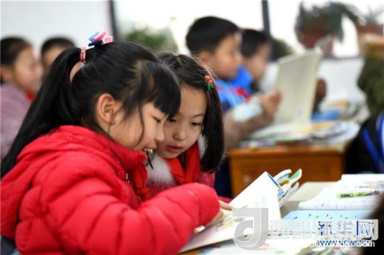 2月25日,貴州省遵義市文化小學(xué)四年級5班的學(xué)生在教室閱讀剛剛領(lǐng)到的新書。