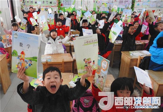 2月25日,江蘇省無錫市揚名中心小學(xué)的學(xué)生們手捧剛剛領(lǐng)取的新課本。(湯毅 攝)