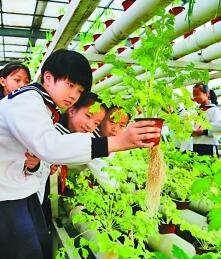 山東省濱州市博興縣第一小學(xué)的學(xué)生們在植物生態(tài)館里學(xué)知識。新華社發(fā)