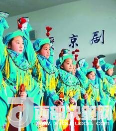 江蘇省海安縣城東鎮(zhèn)西場小學(xué)京劇社團的小票友在排練京劇節(jié)目《霸王別姬》。徐勁柏攝/光明圖片