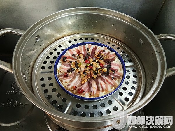 2、蒸制的時(shí)候,千張咸肉中可以加入少許水,我沒有加水,蒸出來(lái)稍稍有些干。
