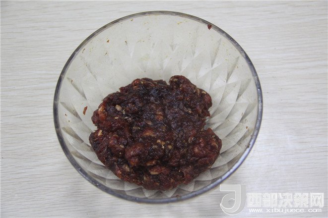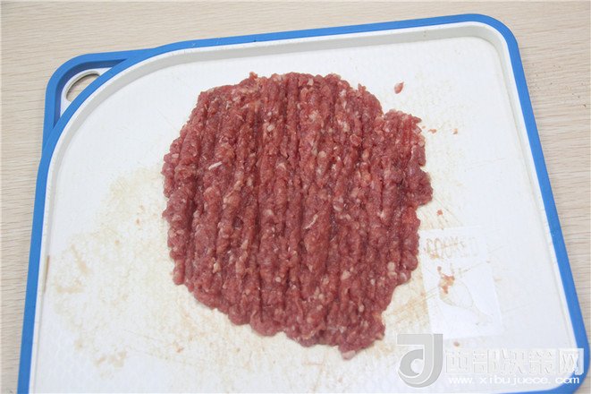 2.牛肉切成碎肉備用。