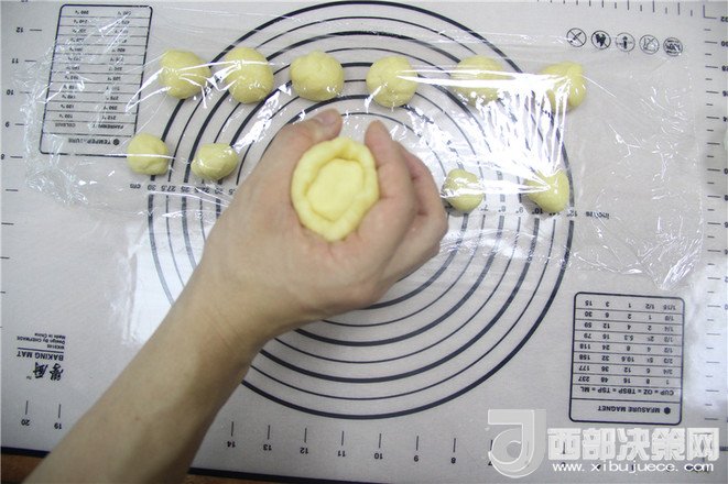 23.面團搓圓后,稍微壓平一下即可。