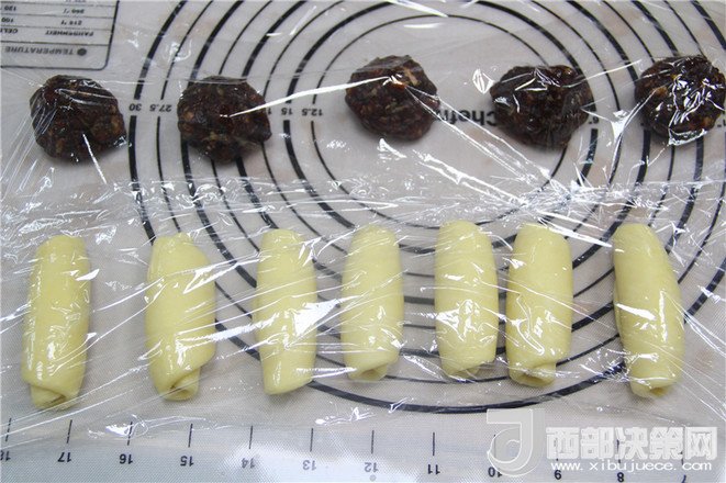 11.把油皮分割成6個25克,油心分成6個20克,分別揉成團。