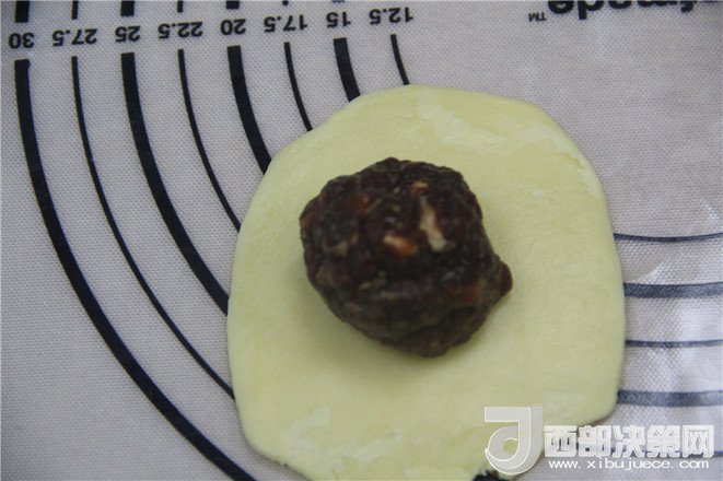 22.把牛肉球放面團中間,底部捏緊。