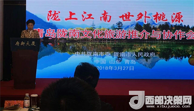 3月27日,在青島市府新大廈舉辦了青島隴南文化旅游推介與協(xié)作會,隴南市人大常委會主任、市委秘書長岳金林、隴南市政協(xié)主席張昉、隴南市委常委、常務(wù)副市長張慶宏、隴南市委常委、宣傳部部長李興華、隴南市副市長徐世林、隴南市政府黨組成員、市委副秘書長、市政府副秘書長殷世逸、隴南市政府黨組成員、市政府副秘書長苑曉輝、隴南市委宣傳部副部長、精神文明辦主任周立鈞、隴南市文廣新局局長汪小娟、隴南市旅游局局長毛樹林及市旅游開發(fā)領(lǐng)導(dǎo)小組考察團參加人員,各縣(區(qū))旅游局負(fù)責(zé)人,重點旅游景區(qū)、重點旅行社負(fù)責(zé)人參加會議。會議由隴南市副市長徐世林主持。