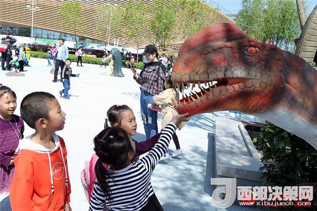 今天,神秘恐龍展在中國(guó)花卉博覽園啟幕?;ú﹫@里的大型侏羅紀(jì)恐龍展,仿若好萊塢電影里的侏羅世界,飛龍、霸王龍、三角龍……這些真實(shí)還原的仿真恐龍?jiān)煨透鳟?,吸引廣大銀川市民前來觀賞。(實(shí)習(xí)生 海東)
