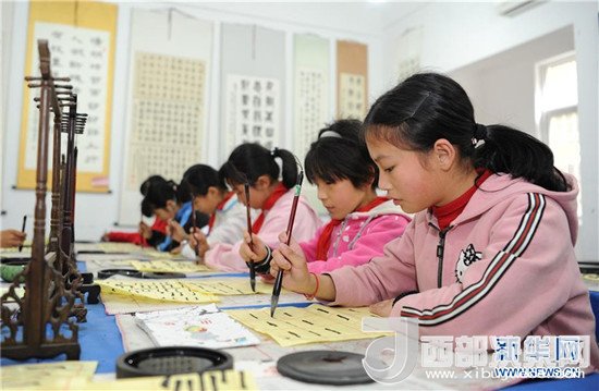 陜西省漢中市勉縣溫泉鎮(zhèn)中心小學(xué),是勉縣在汶川地震受災(zāi)后重建的一所鄉(xiāng)村小學(xué),目前在校學(xué)生470人。近年來(lái),溫泉鎮(zhèn)中心小學(xué)不斷改善辦學(xué)條件和辦學(xué)質(zhì)量,在校內(nèi)建成音樂(lè)教室、書法教室、圖書室等多樣化教學(xué)場(chǎng)所,并長(zhǎng)期開(kāi)展舞蹈課、書法課、民俗表演課等素質(zhì)教育課程,使學(xué)生們能夠享受到優(yōu)質(zhì)的教育服務(wù)。新華社發(fā)(張博文 攝)