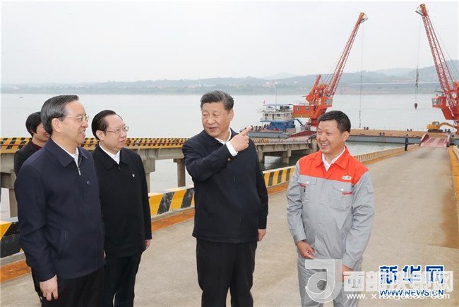 4月26日下午,中共中央總書記、國家主席、中央軍委主席習近平在武漢主持召開深入推動長江經(jīng)濟帶發(fā)展座談會并發(fā)表重要講話。這是座談會前,習近平于24日中午到興發(fā)集團宜昌新材料產(chǎn)業(yè)園,察看化工企業(yè)搬遷、改造以及碼頭復(fù)綠情況。新華社記者 鞠鵬 攝