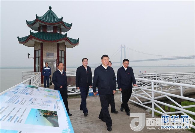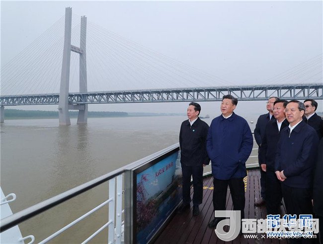 為了開好這次座談會,4月24日至25日,習近平先后在湖北省委書記蔣超良、省長王曉東,湖南省委書記杜家毫、省長許達哲陪同下,深入湖北宜昌市和荊州市、湖南岳陽市以及三峽壩區(qū)等地,考察化工企業(yè)搬遷、非法碼頭整治、江水污染治理、河勢控制和護岸工程、航道治理、濕地修復(fù)、水文站水文監(jiān)測工作等情況,實地了解長江經(jīng)濟帶發(fā)展戰(zhàn)略實施情況。