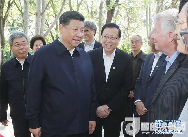 5月2日,中共中央總書記、國家主席、中央軍委主席習近平來到北京大學考察。這是習近平在北京大學臨湖軒北側的小庭院看望部分資深教授和中青年教師代表,并同他們親切交談。新華社發(fā)(盛佳鵬攝)
