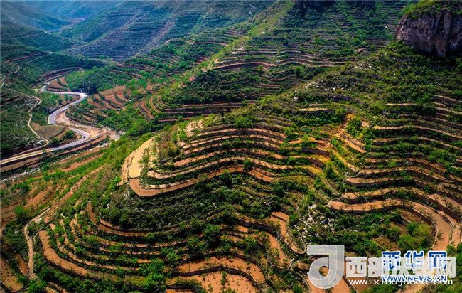 這是5月6日無人機(jī)拍攝的涉縣關(guān)防鄉(xiāng)后池村梯田和公路。