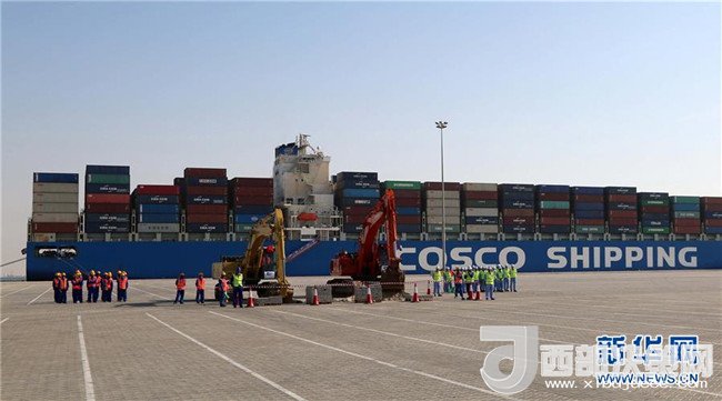 這是2017年11月5日,在阿拉伯聯(lián)合酋長(zhǎng)國(guó)阿布扎比,中遠(yuǎn)海運(yùn)港口有限公司舉行中遠(yuǎn)海運(yùn)港口阿布扎比碼頭正式動(dòng)工暨場(chǎng)站租賃簽約儀式,標(biāo)志著中國(guó)和阿聯(lián)酋“一帶一路”項(xiàng)目建設(shè)取得新進(jìn)展。新華社記者蘇小坡 攝