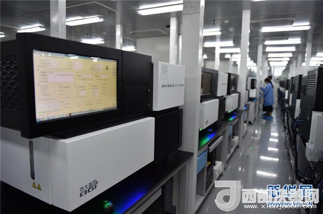 2017年7月13日,工作人員在位于深圳的中國(guó)國(guó)家基因庫操作基因測(cè)序儀測(cè)序。新華社記者毛思倩攝