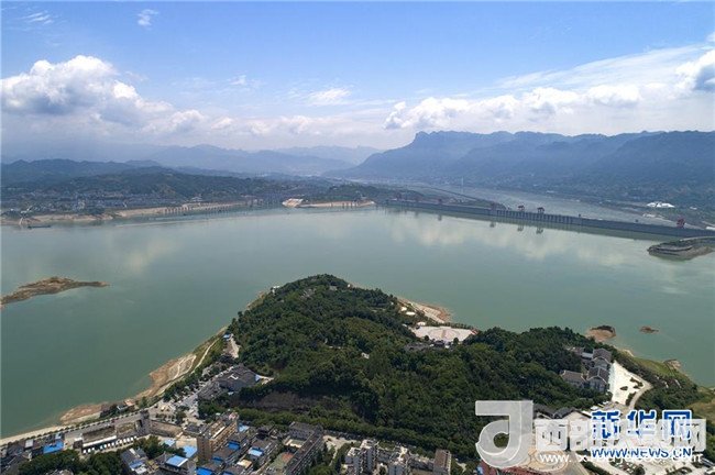這是6月1日拍攝的三峽大壩,昔日淹沒(méi)水下的秭歸縣木魚(yú)島又露出水面。