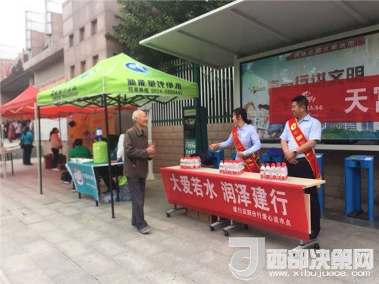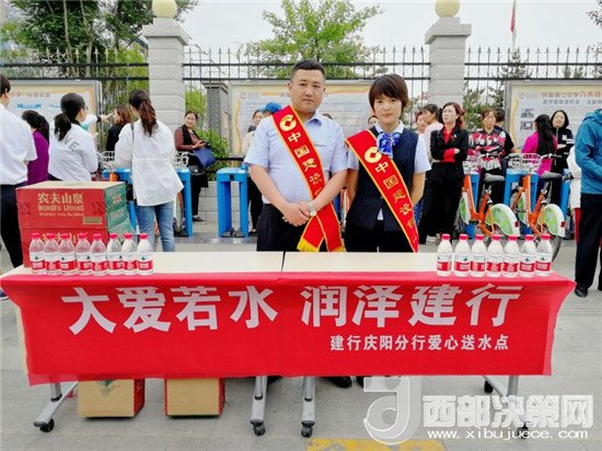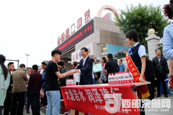 西部決策網——西部大開發(fā)訊(帥華鋒 通訊員 齊彩云 嵇祥)6月7日,建行慶陽分行組織員工,在這個特別的日子開展了“大愛若水,潤澤建行”助力高考學子活動,在高考期間,考生及家長可在我行設立的補水站處憑準考證領取1瓶礦泉水,為寒窗苦讀的學子與焦急等待的家長送去了關懷。