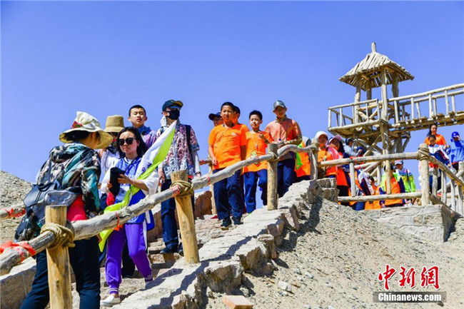 敦煌陽關(guān)景區(qū)新開辟的陽關(guān)棧道旅游項(xiàng)目,端午節(jié)期間吸引眾多游人體驗(yàn)。王斌銀 攝