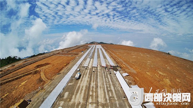 “前期遇到的最大障礙就是土石方開挖和回填工程。”現(xiàn)場(chǎng)施工管理人員介紹,作為渝東北典型的高填方機(jī)場(chǎng),巫山機(jī)場(chǎng)填筑體最高處達(dá)100余米,整個(gè)擬建場(chǎng)地相對(duì)高差約227.25米,道槽區(qū)最大填高達(dá)50米,施工過程中需處理的溶洞多達(dá)40處,施工難度極大。在土石方作業(yè)最忙時(shí)每天有近2000人和800多臺(tái)機(jī)具晝夜施工,土石方運(yùn)輸車輛川流不息。