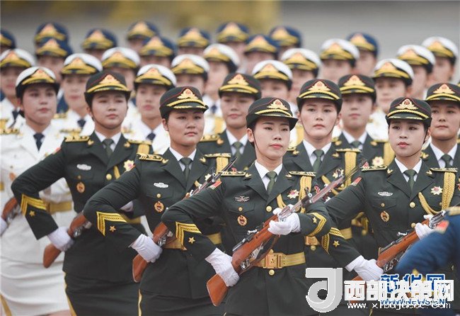 6月6日下午,國家主席習(xí)近平在人民大會(huì)堂東門外廣場(chǎng)舉行儀式,歡迎吉爾吉斯斯坦總統(tǒng)熱恩別科夫?qū)χ袊M(jìn)行國事訪問。這是在歡迎儀式上首次增加的三軍儀仗隊(duì)女兵方陣。新華社記者 陳曄華 攝