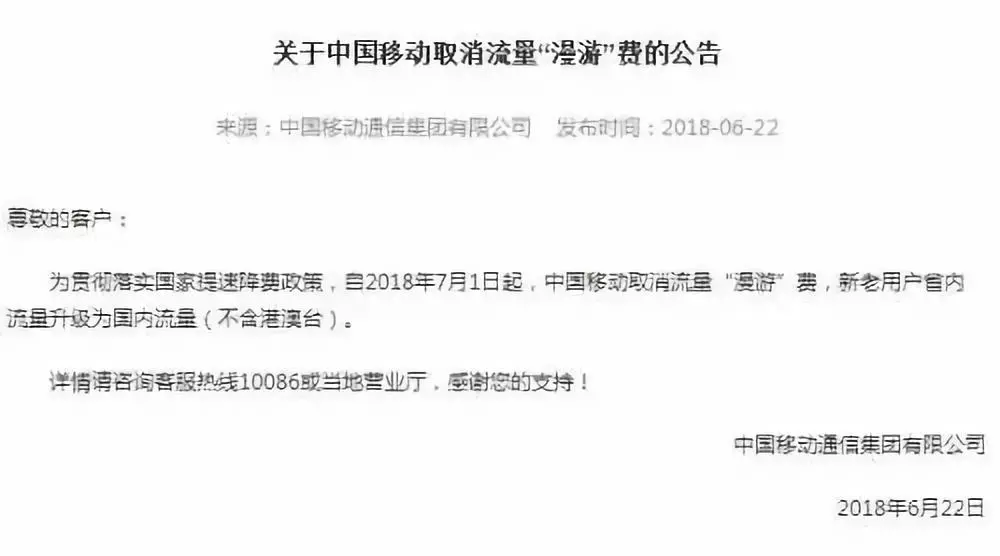 6月22日,中國移動、中國聯(lián)通和中國電信先后宣布自7月1日起取消流量“漫游”費(fèi),手機(jī)用戶省內(nèi)流量升級為國內(nèi)流量(不含港澳臺)。