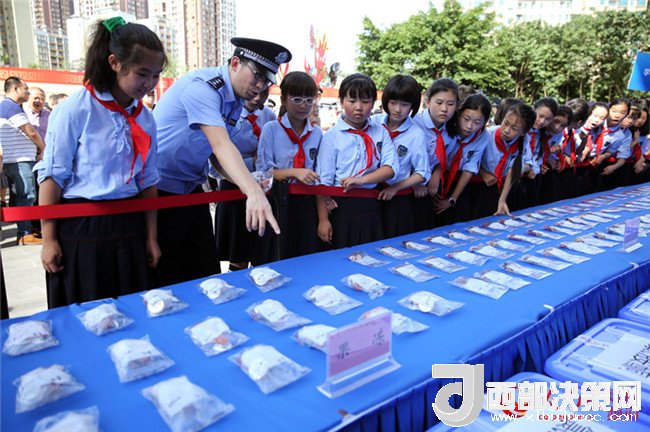 學(xué)生參觀展示的各類(lèi)毒品,并學(xué)習(xí)如何識(shí)別毒品,了解毒品危害。劉政寧 攝