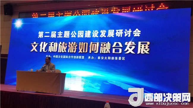 西部決策網(wǎng)——西部大開發(fā)(記者李承明)5月19日是組建文化和旅游部之后的第一個(gè)“中國(guó)旅游日”,由中國(guó)文化國(guó)際合作創(chuàng)新聯(lián)盟主辦、泰安太陽(yáng)部落承辦的“第二屆主題公園建設(shè)發(fā)展論壇”在山東泰安舉行。泰安市政府代表、行業(yè)協(xié)會(huì)負(fù)責(zé)人、企業(yè)代表以及媒體代表圍繞文化和旅游如何融合發(fā)展進(jìn)行了深入探討,兩位重量級(jí)的嘉賓——《經(jīng)濟(jì)日?qǐng)?bào)》原總編輯艾豐、中國(guó)記協(xié)原黨組書記翟惠生分別圍繞“文化與旅游如何融合發(fā)展”作了主旨發(fā)言。