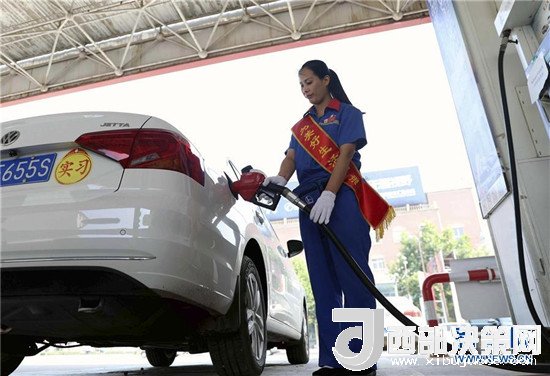 7月23日,河北省任縣一家加油站工作人員在給車(chē)輛加油。