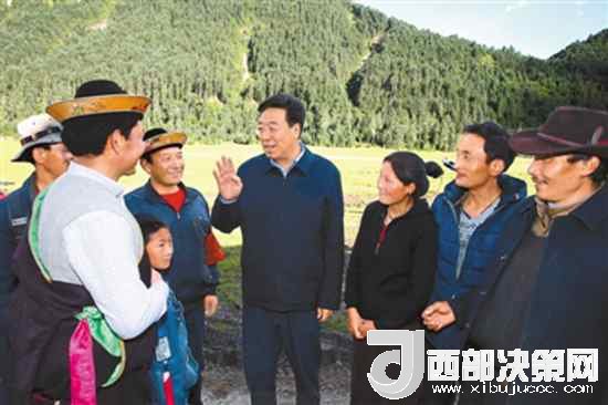 7月24日,自治區(qū)黨委書記吳英杰先后考察了拉林高等級(jí)公路米拉山隧道建設(shè)、工布江達(dá)縣錯(cuò)高鄉(xiāng)基層黨建、錯(cuò)高鄉(xiāng)新措景區(qū)開發(fā)和林芝市“雙創(chuàng)”工作情況。這是在錯(cuò)高鄉(xiāng)新措景區(qū),吳英杰與當(dāng)?shù)剞r(nóng)牧民親切交談,實(shí)地考察旅游促增收情況。本報(bào)記者 姚海全 攝