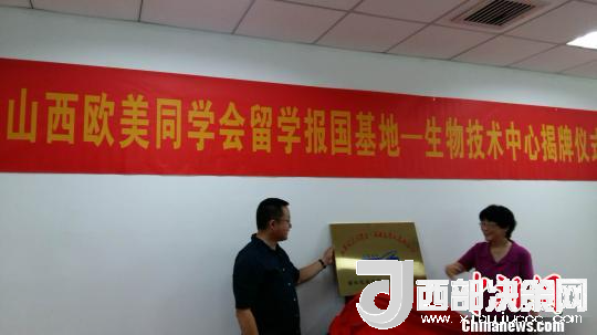 會(huì)前,與會(huì)人員共同見證了“留學(xué)報(bào)國基地—生物技術(shù)中心揭牌儀式”。山西歐美同學(xué)會(huì) 供圖