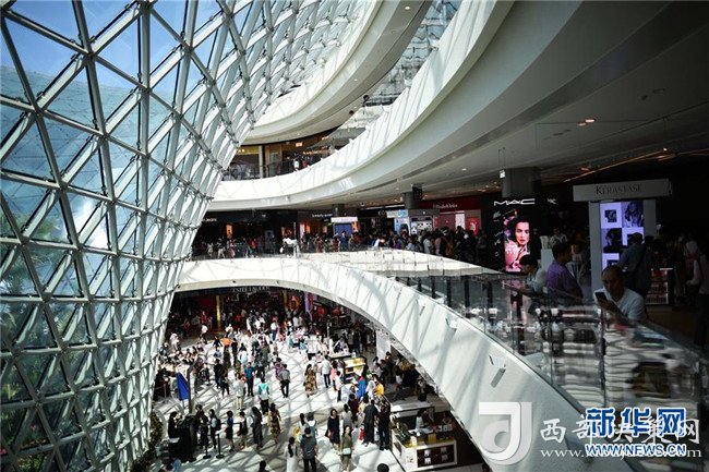2018年2月18日,顧客在海南三亞海棠灣免稅店內游覽、購物。新華社記者 郭程 攝