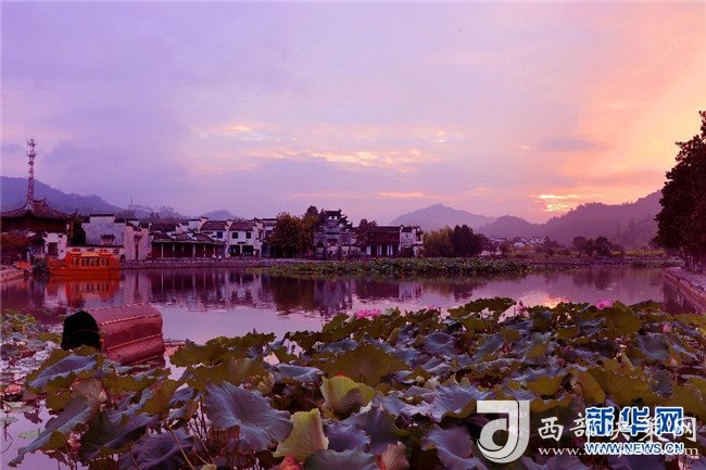 8月4日,色彩絢麗的朝霞,映射安徽皖南西遞古村。