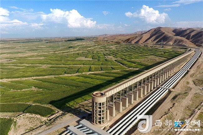 寧夏紅寺堡揚(yáng)水工程三泵站壓力管道和岀水渡槽。新華網(wǎng) 張潔龍 攝