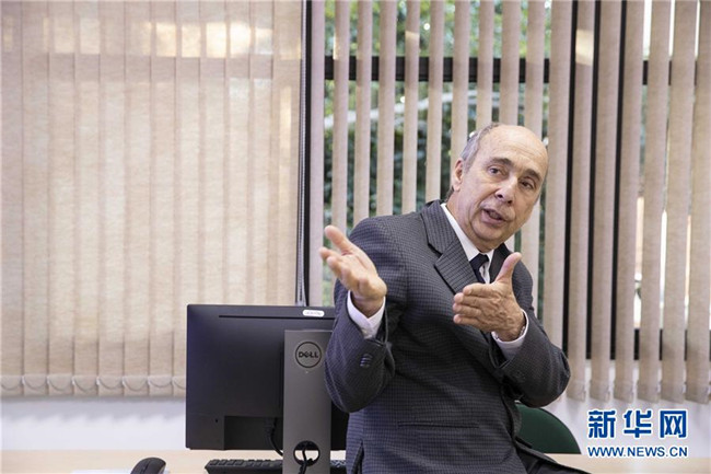 8月30日,在巴西圣若澤杜斯坎普斯,中國(guó)-巴西空間天氣聯(lián)合實(shí)驗(yàn)室巴方運(yùn)營(yíng)負(fù)責(zé)人若阿金·科斯塔在介紹實(shí)驗(yàn)室運(yùn)轉(zhuǎn)情況?!⌒氯A社記者 李明 攝