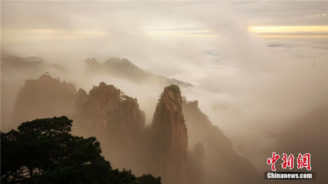 9月17日,秋雨洗禮后的安徽黃山風(fēng)景區(qū)霧氣繚繞,秋風(fēng)清爽。遠(yuǎn)處千峰疊嶂,互相競秀,千谷萬壑,云煙升騰。陣陣秋風(fēng),吹拂著云霧淡淡濃濃,天都峰、蓮花峰及西海群峰藏在其間,若隱若現(xiàn),幻若仙境。 葉永清 攝