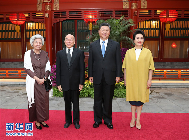 19日晚,在中秋佳節(jié)來臨之際,國家主席習(xí)近平和夫人彭麗媛在釣魚臺國賓館親切看望正在北京休養(yǎng)的柬埔寨國王西哈莫尼和太后莫尼列。