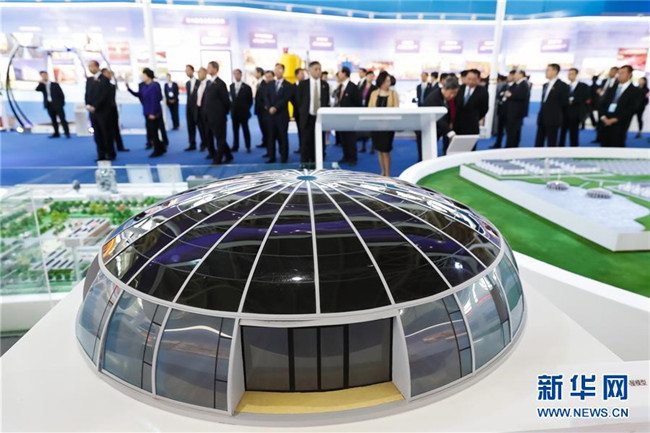 9月19日,觀眾在參觀展覽上展出的光伏住宅小屋模型。9月19日,寧夏回族自治區(qū)成立60周年大型成就展在銀川國(guó)際會(huì)展中心開幕。記者沈伯韓攝