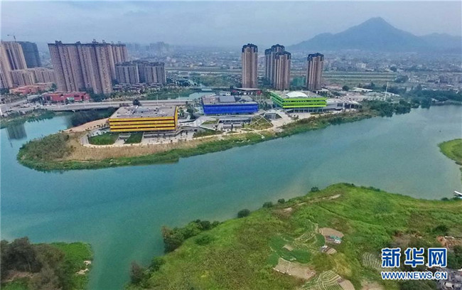 這是利用木蘭溪流域舊河道開挖成的人工湖——玉湖。當?shù)卦诖私Y合周邊公共綠地,建設公共建筑,實現(xiàn)了現(xiàn)代建筑與自然景觀渾然一體(8月6日無人機拍攝)。新華社記者 林善傳 攝