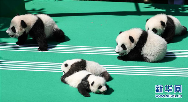 這是9月28日在成都大熊貓繁育研究基地月亮產(chǎn)房拍攝的大熊貓寶寶。 當(dāng)日,成都大熊貓繁育研究基地為2018年出生的12只新生大熊貓寶寶舉行了一場(chǎng)別開(kāi)生面的亮相活動(dòng)。