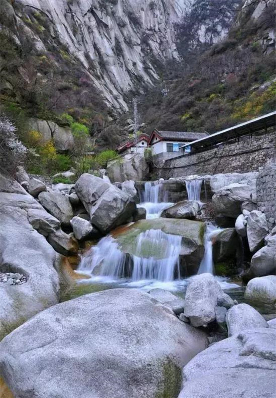 華山的水源不是十分豐富,但水景眾多。從山麓到山巔,水無一色全,玉帶貫珠,靈氣秀色,形成華山奇妙的自然景觀。集中于景區(qū)的華山峪、黃甫峪和仙峪等幽谷峪道,水流跌宕有致,清澈見底,如瓊漿玉液。秋天的雨季,河水激蕩,小溪淙淙,水霧漫谷,清靈幽謐,景象可人。
