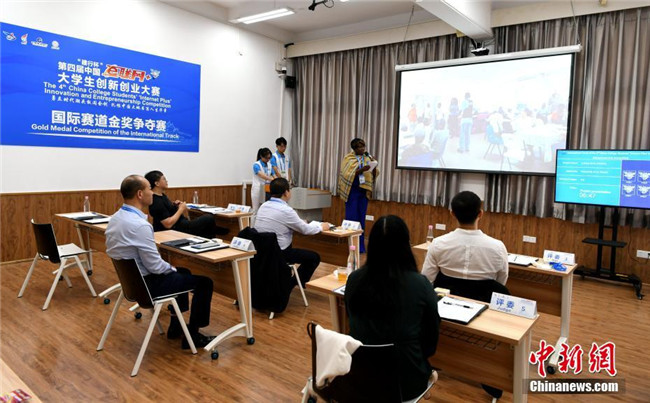 10月13日,第四屆中國“互聯(lián)網(wǎng)+”大學(xué)生創(chuàng)新創(chuàng)業(yè)大賽總決賽在廈門大學(xué)舉行。本屆大賽于今年3月份啟動(dòng),迄今累計(jì)已有近265萬大學(xué)生、63萬個(gè)團(tuán)隊(duì)參賽,涌現(xiàn)出一大批科技含量高、市場潛力大、社會(huì)效益好的高質(zhì)量項(xiàng)目,以“90后”為主的創(chuàng)新創(chuàng)業(yè)生力軍已全面發(fā)力,釋放出“青年+創(chuàng)新創(chuàng)業(yè)”的無窮力量。圖為比賽現(xiàn)場。中新社記者 王東明 攝