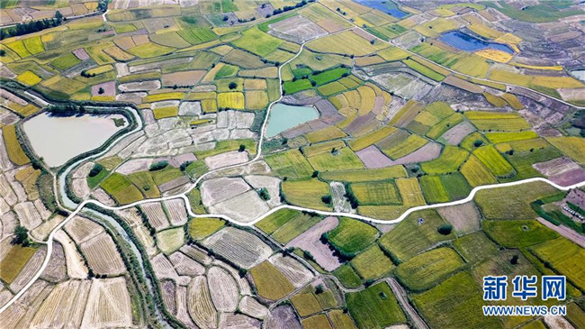 安徽鳳陽小崗村的田野景象(9月27日無人機(jī)拍攝)。 新華社記者 張端 攝