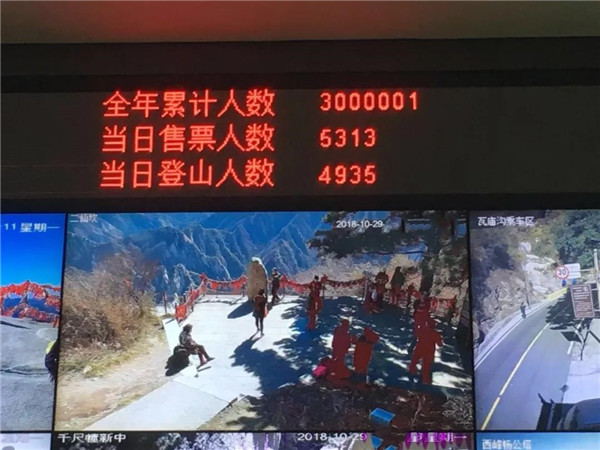 在全國慶祝改革開放40周年之際,10月29日11時,華山景區(qū)迎來了今年購票登山人數(shù)300萬人次的歷史性時刻。