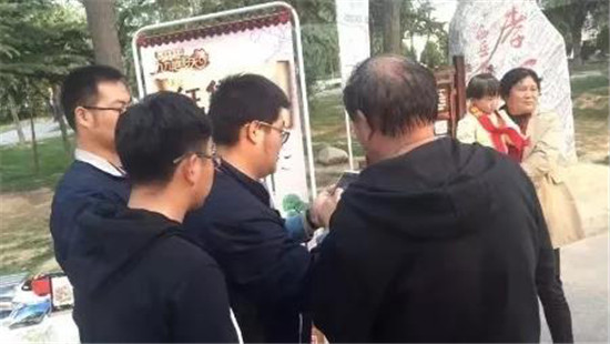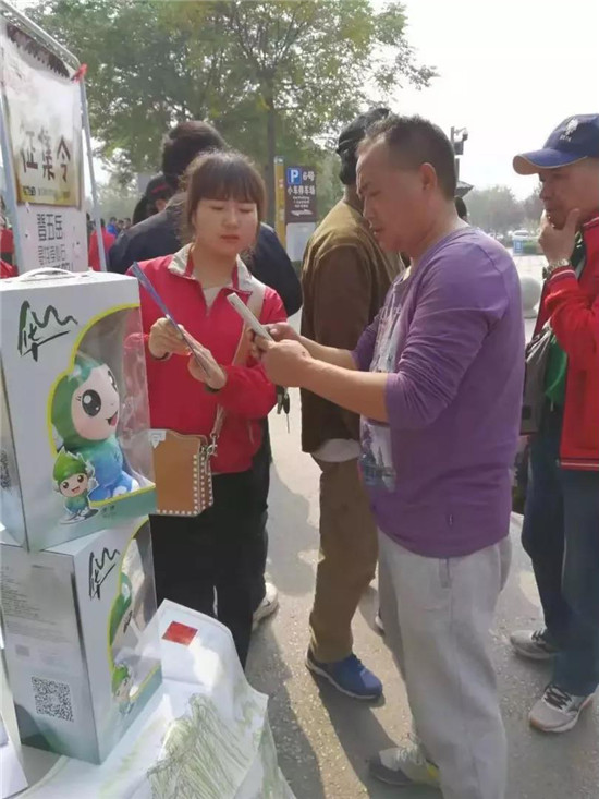 營(yíng)銷(xiāo)中心工作人員耐心細(xì)致地幫助游客參與活動(dòng)