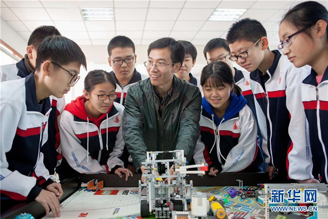 近年來(lái),河北武邑中學(xué)開(kāi)設(shè)機(jī)器人、航模、科技實(shí)驗(yàn)等趣味科普課程,激發(fā)學(xué)生的創(chuàng)新創(chuàng)造意識(shí)和科學(xué)探索精神,讓學(xué)生近距離感受科技魅力。 新華社記者 朱旭東 攝