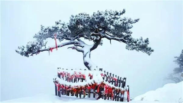 清晨,當(dāng)你推開山莊的窗戶,一定會(huì)驚詫眼前的景色。在夜色中掛在松針上的夜露凝固成一串串潔白的冰凌,漫山的松樹像開放著白色的花朵,在晨曦中閃著美麗,這就是華山奇景——雪松。在烏云厚重的日子,山風(fēng)會(huì)將云霧吹落在山澗峰嶺,把它變成一層厚厚的雪。站在峰嶺上看華山落雪,那是一片莽莽蒼蒼的銀白世界。雪花在風(fēng)中飄舞著,飄落著,你伸開雙臂雕塑般地佇立在潔白的世界中,“仰面朝天穹,低頭瞰黃渭”。一種豪情心底生,萬般俗念隨風(fēng)去,實(shí)在是一次難得的精神洗禮。——華山文化•冬
