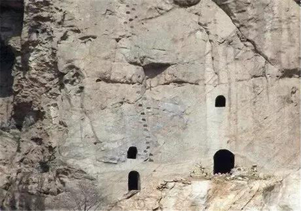 白雀寺北窟位于華陰市五方鄉(xiāng)仙峪村南秦嶺北支華山山脈。該石窟東隔仙峪與華山西峰相望,高出峪道約300米。洞窟開鑿于山體的花崗巖質(zhì)壁面上,存有洞窟三眼。石窟中的原彩塑已無(wú)存,洞頂上刻有的圖案保存較好,專家根據(jù)建造特征分析,三眼石窟可能始鑿于唐代。